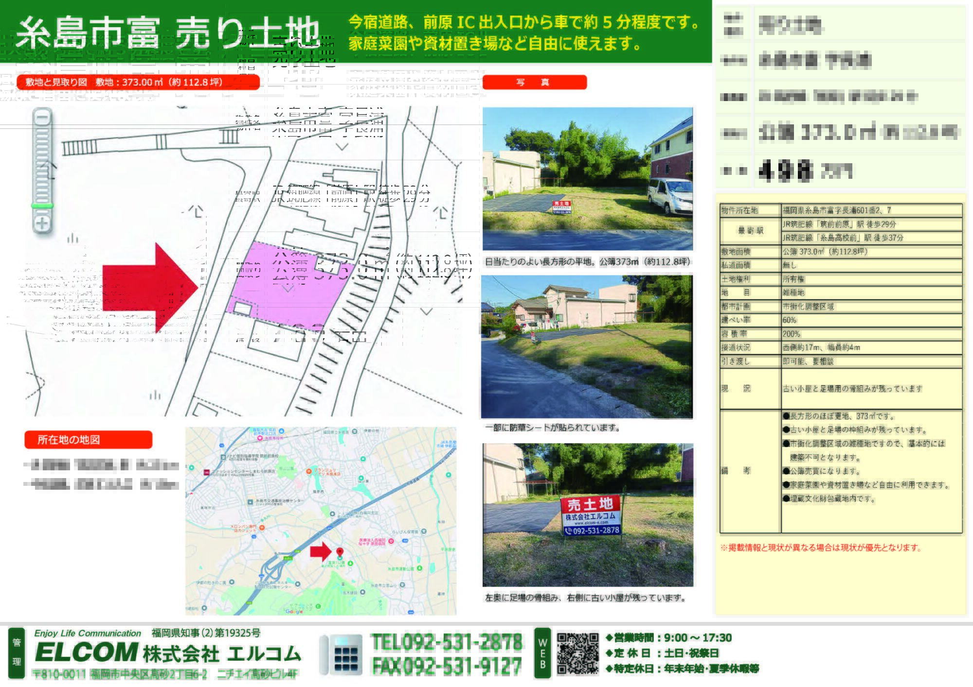 【売土地】糸島市冨字長浦「雑種地」公簿373.0㎡
